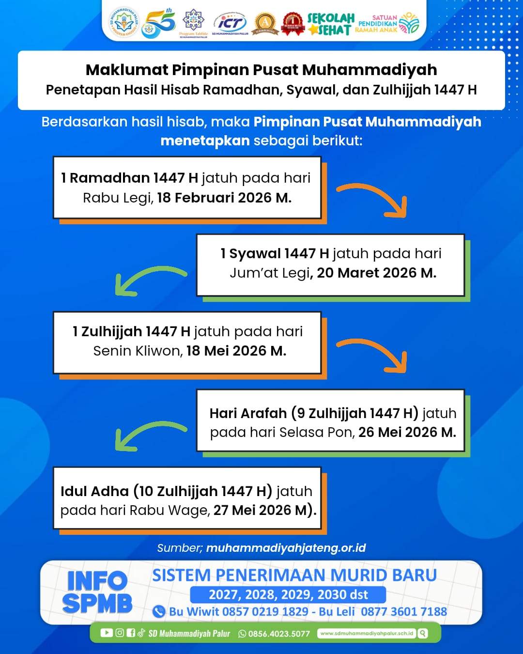 Pimpinan Pusat Muhammadiyah resmi menetapkan awal Ramadhan, Syawal, dan Zulhijah 1447 H berdasarkan hasil hisab Majelis Tarjih dan Tajdid.